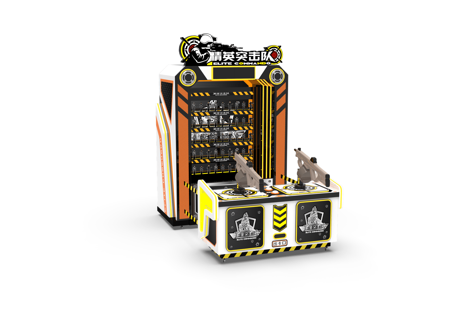 This product is equipped with two simulated water bullet guns, which can be fired in a single shot and continuously. Each time the target is hit, different sounds will be emitted, and the LED screen will accumulate points.