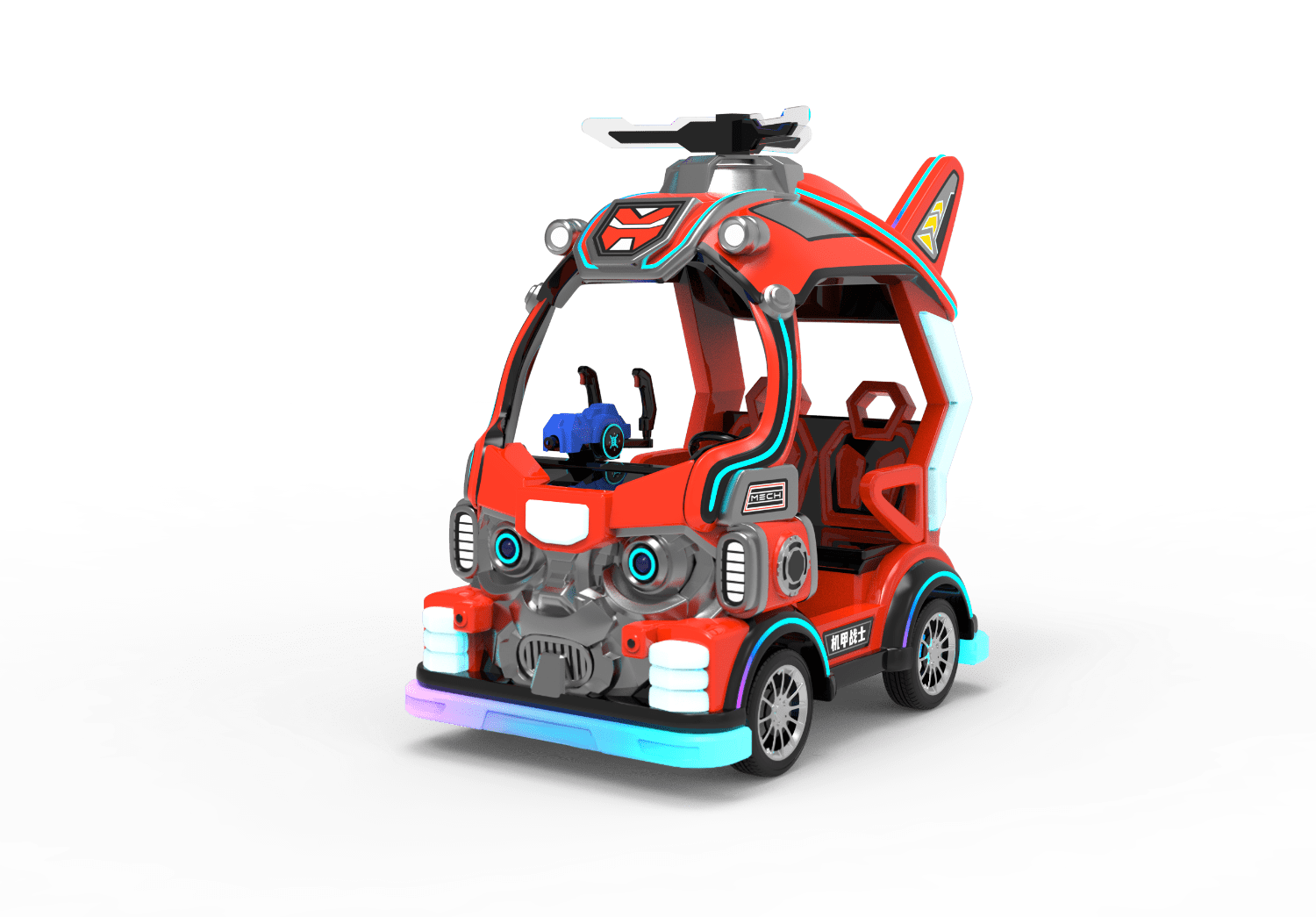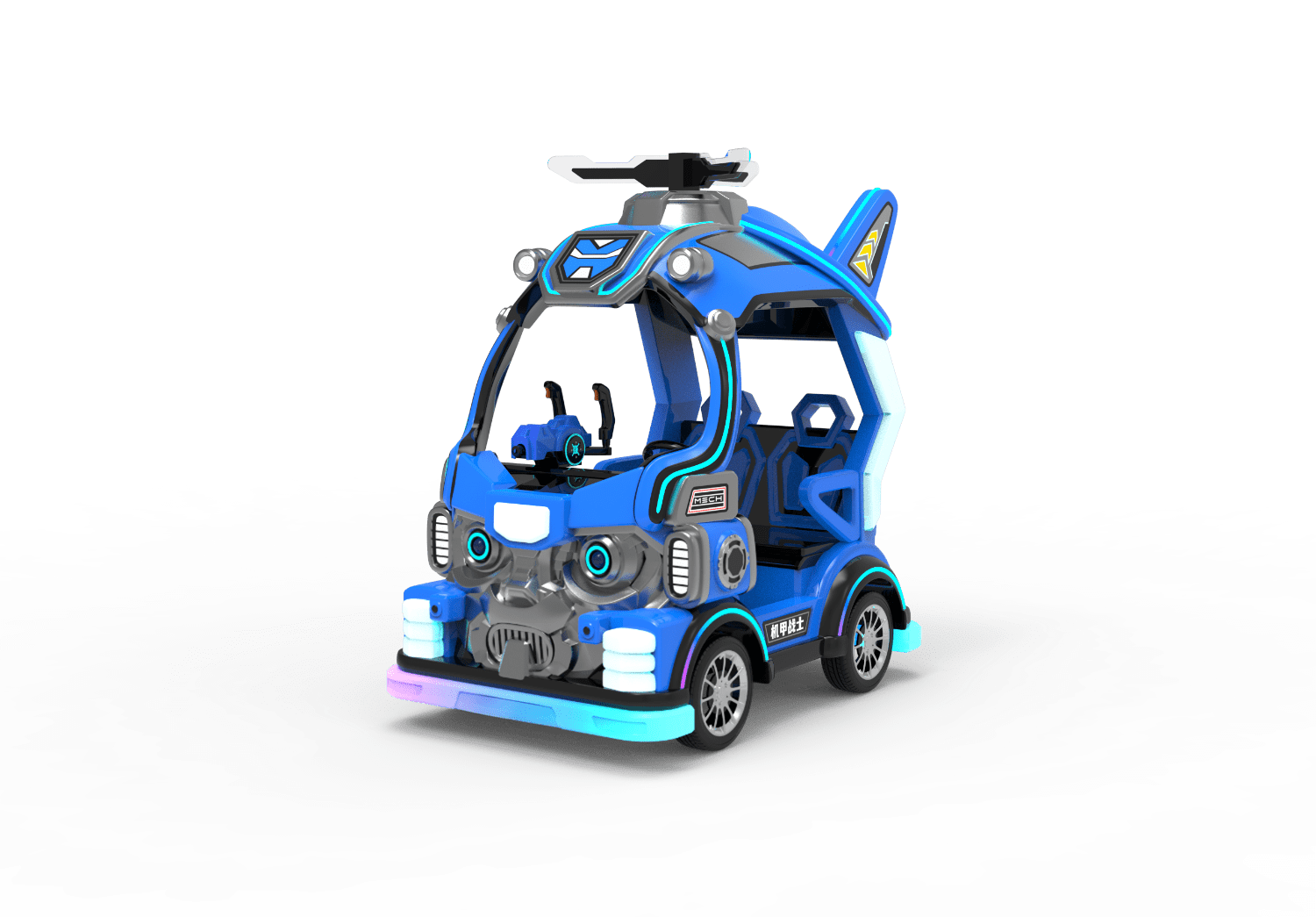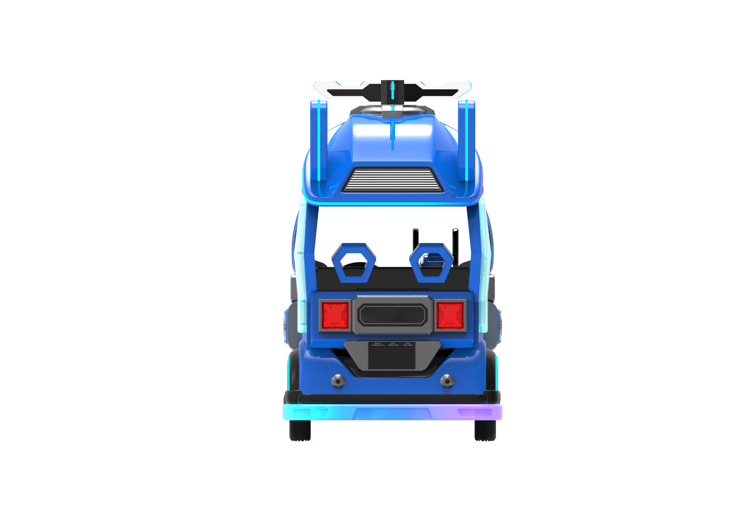 Started by card swipe/remote /coin(optional) , time & speed adjustable, sensor and guardrail for anti- collision/RGB light and music
