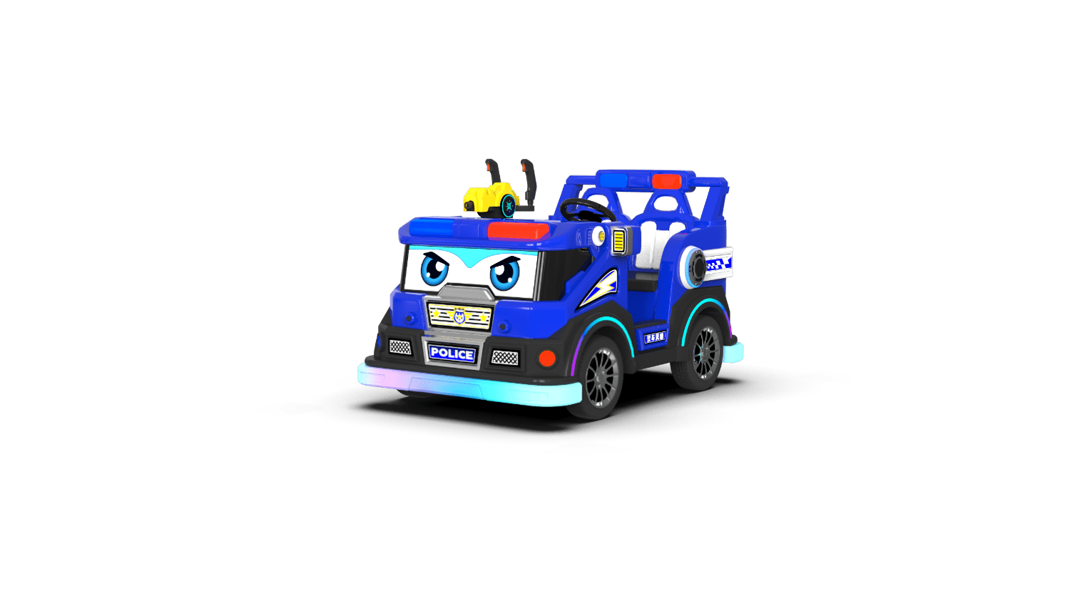 Started by card swipe/remote /coin(optional) , time & speed adjustable, sensor and guardrail for anti- collision/RGB light and music