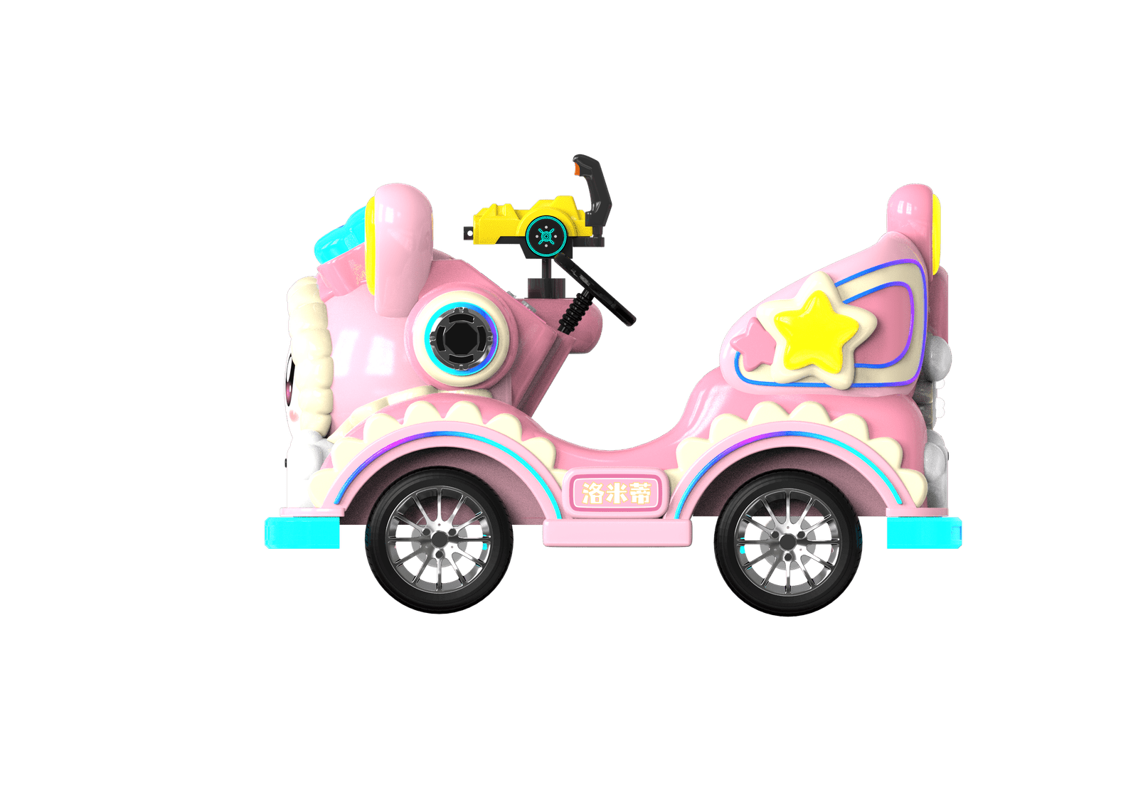 Started by card swipe/remote /coin(optional) , time & speed adjustable, sensor and guardrail for anti- collision/RGB light and music