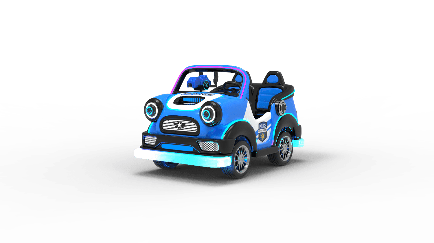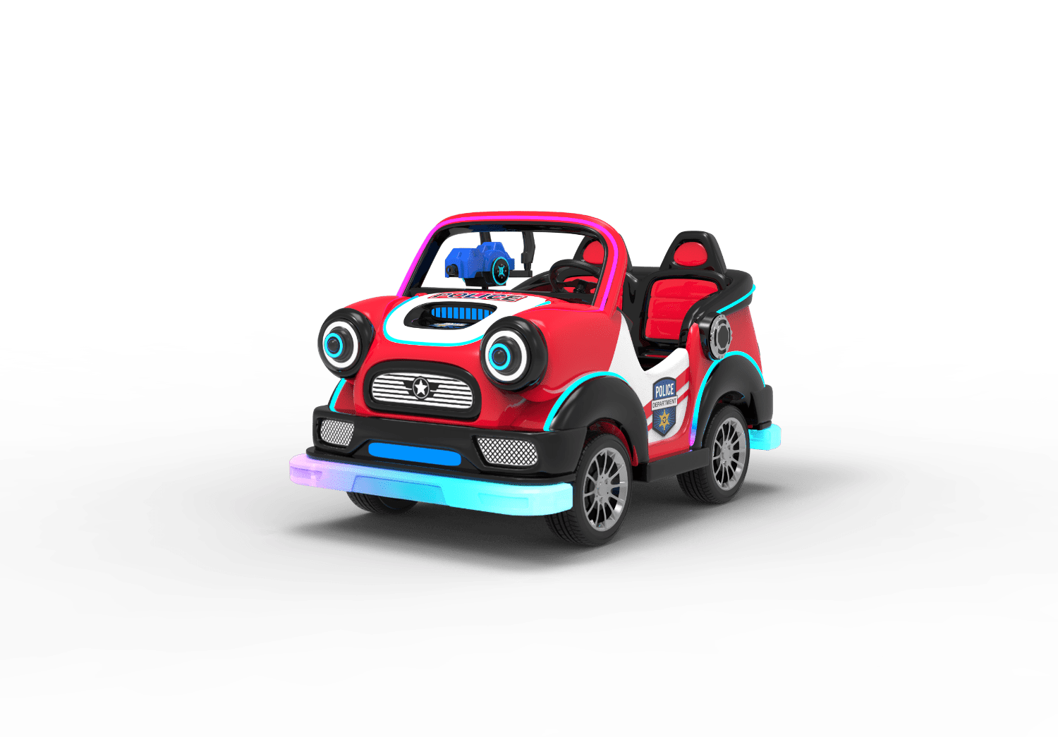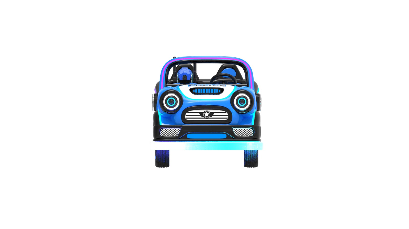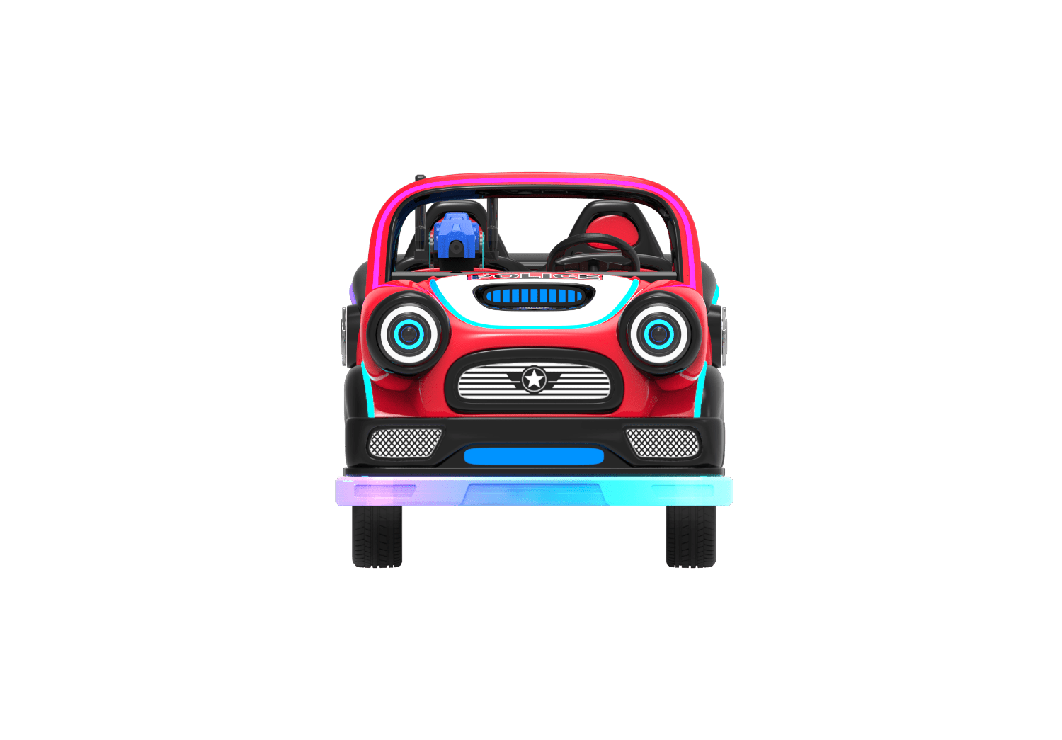 Started by card swipe/remote /coin(optional) , time & speed adjustable, sensor and guardrail for anti- collision/RGB light and music