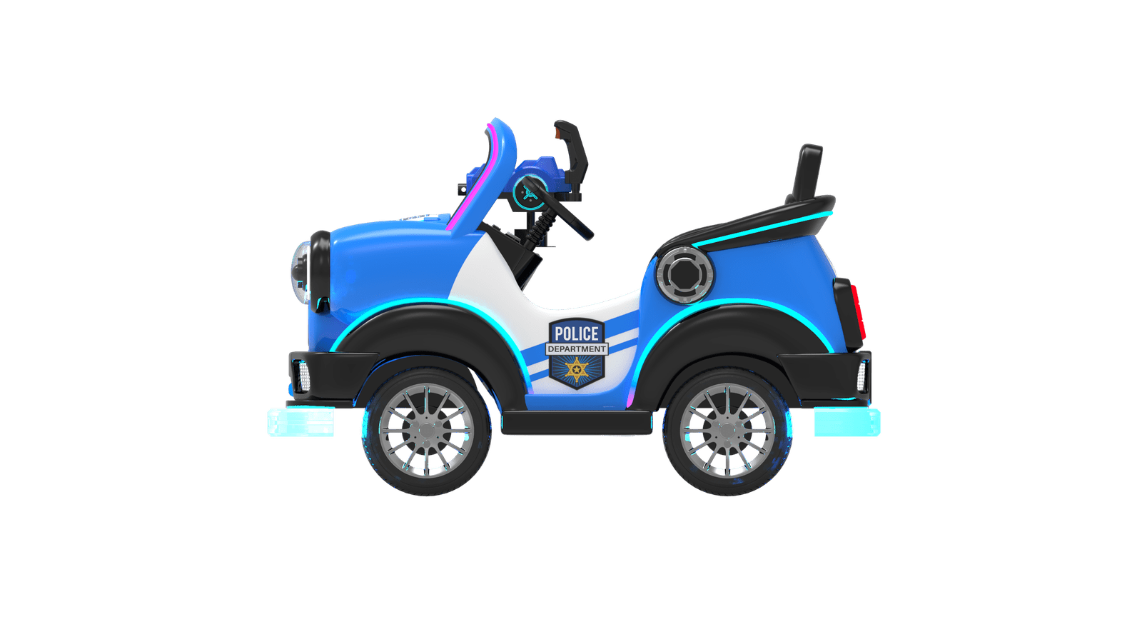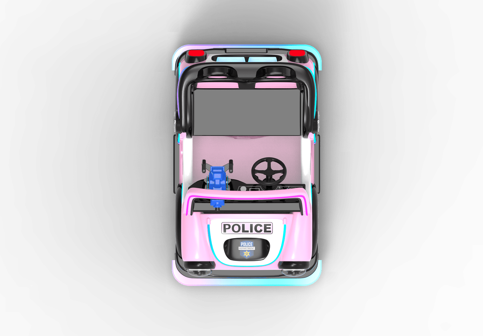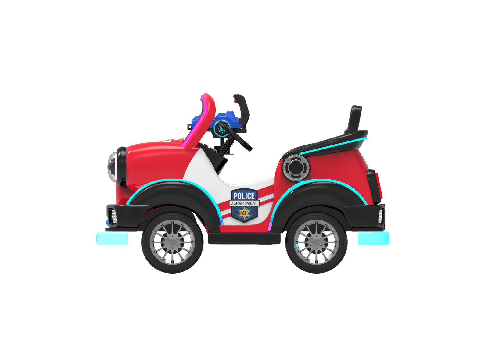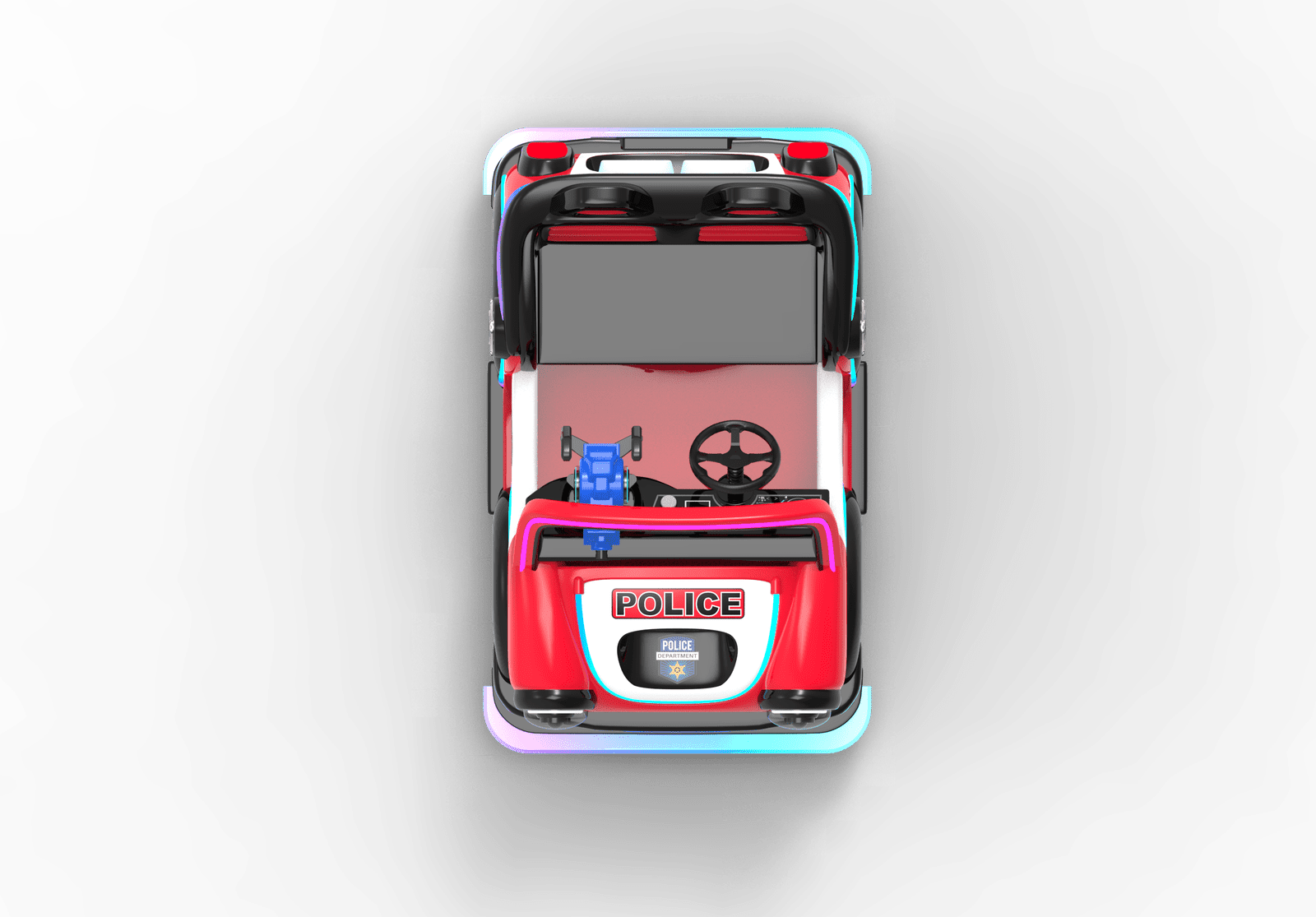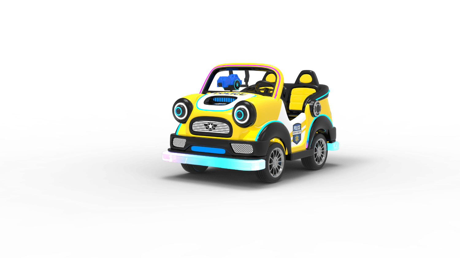 Started by card swipe/remote /coin(optional) , time & speed adjustable, sensor and guardrail for anti- collision/RGB light and music